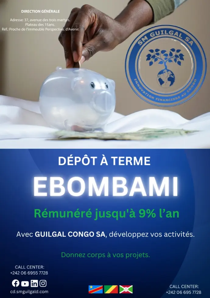 Boostez vos ambitions avec le dépôt à terme EBOMBAMI : épargnez dès 50000 FCFA et profitez d’un rendement attractif jusqu’à 9 % l’an.